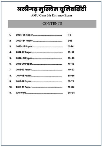 11 years of real AMU Class 6 Entrance Exam papers (2015–2025) in one single book.